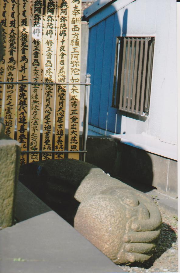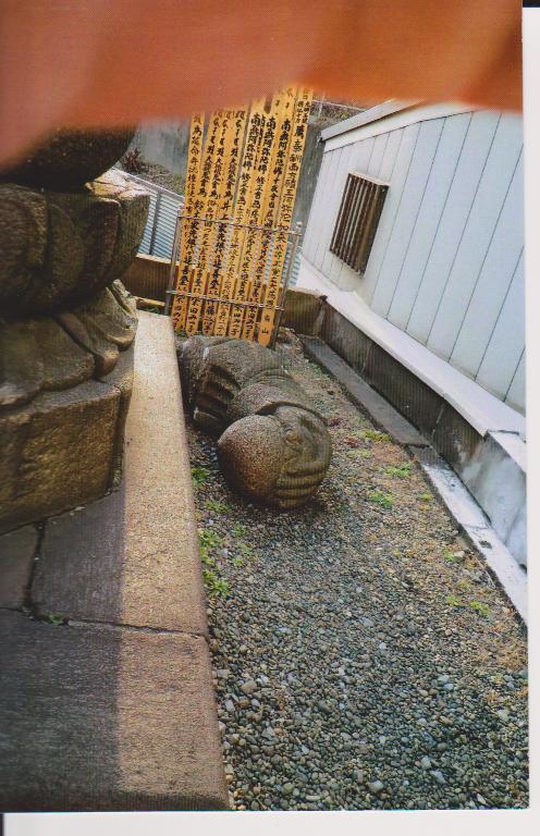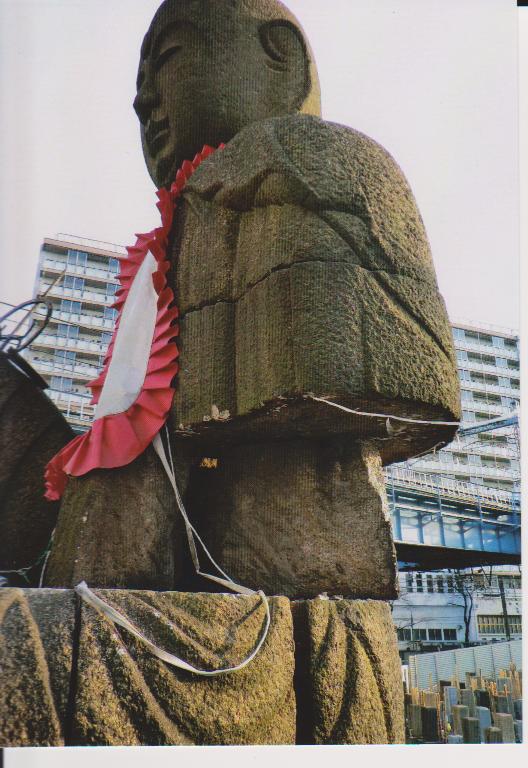東日本大震災の揺れで落ちた宝珠をもつ左手